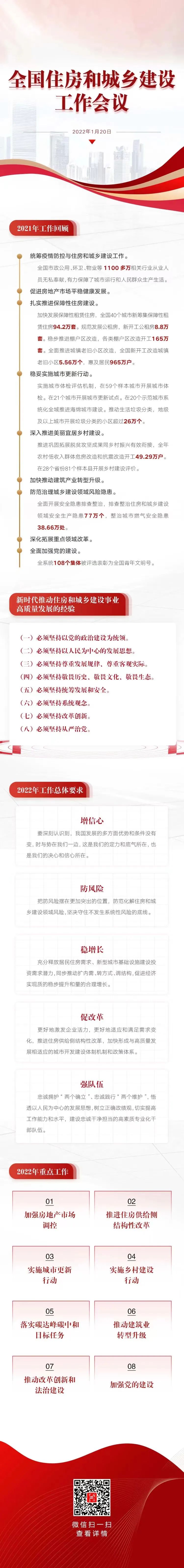 1月20日,全国住房和城乡建设工作会议在北京以视频形式召开。会议深入学习贯彻习近平新时代中国特色社会主义思想,全面贯彻落实党的十九大和十九届历次全会精神、中央经济工作会议精神,总结2021年工作,分析形势和问题,研究部署2022年工作。住房和城乡建设部党组书记、部长王蒙徽作工作报告。